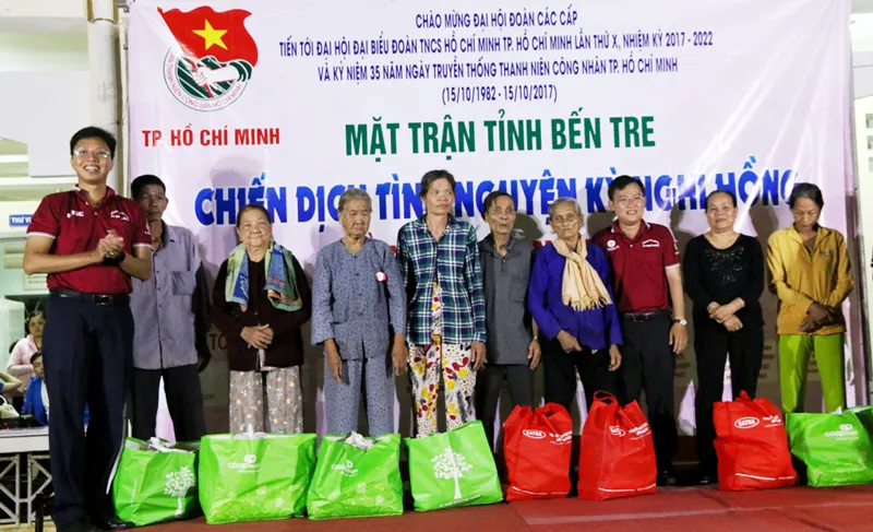 Hoạt động tình nguyện tại huyện Mỏ Cày Bắc, tỉnh Bến Tre thể hiện tinh thần trách nhiệm, chia sẻ cùng cộng đồng của thanh niên TPHCM với người dân có hoàn cảnh khó khăn, góp phần tham gia đảm bảo an sinh xã hội.