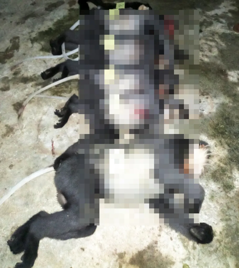 Phát hiện đơn vị chức năng, cả 2 đối tượng bỏ tang vật, tháo chạy vào rừng để lẩn trốn. Tại hiện trường, đoàn kiểm tra liên ngành phát hiện có 2 ba lô bên trong chứa 5 cá thể voọc nghi loài voọc chà vá chân xám đã chết (trọng lượng từ 8 - 15 kg/cá thể).