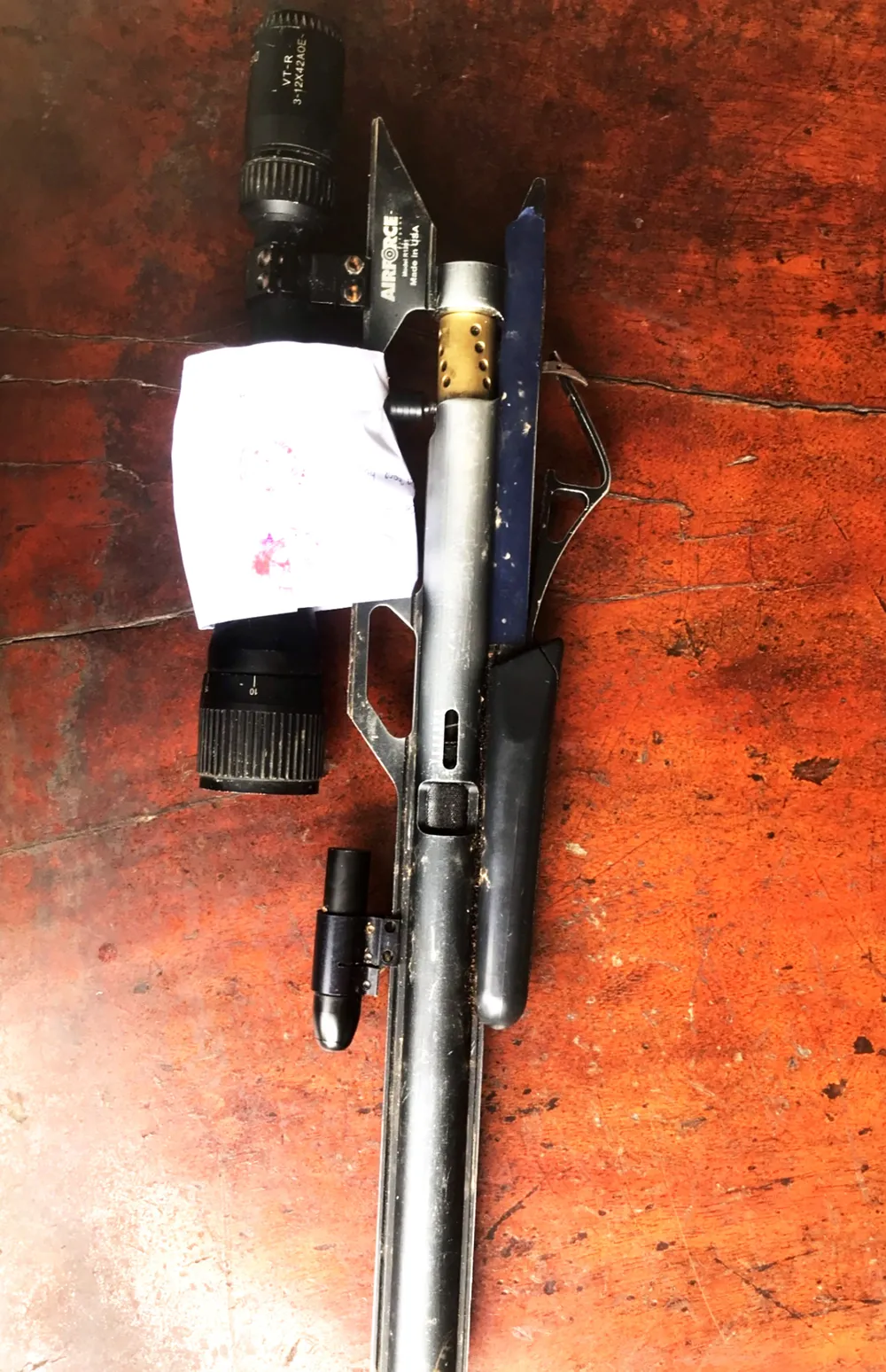 Ngoài ra, lực lượng chức năng thu giữ tang vật khác, gồm: 1 xe máy, 1 bình hơi dùng để nạp hơi cho súng hơi tự chế), 53 viên đạn chì, 1 ống giảm thanh...