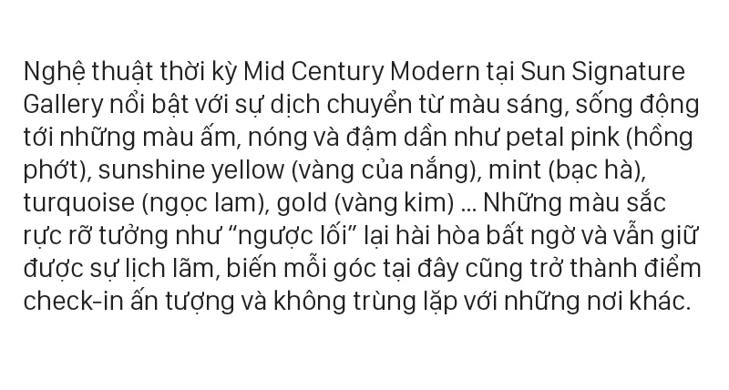 Một lần nữa, “phù thủy kiến trúc” Bill Bensley tái xuất tại Phú Quốc với Sun Signature Gallery - hiện diện như một bảo tàng nghệ thuật nơi lưu giữ những nét độc đáo nhất của phong cách nghệ thuật giữa thế kỷ XX – Mid Century Modern.