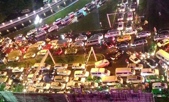 Cửa ngõ sân bay Tân Sơn Nhất bị ùn tắc do có một lượng lớn xe cộ từ khu vực xung quanh đi qua trục chính đường Trường Sơn. Ảnh: T.L