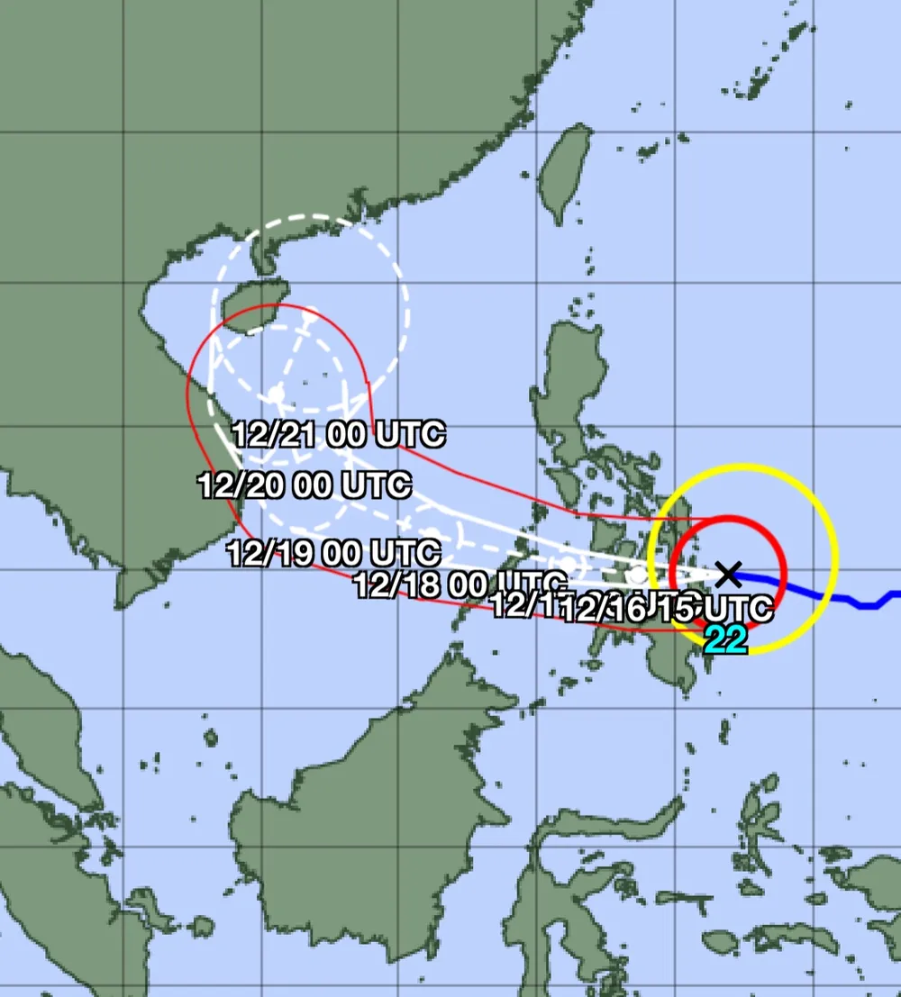 Theo công điện, bão RAI duy trì cường độ rất mạnh, di chuyển nhanh. Dự báo đêm 17-12, bão sẽ đi vào Biển Đông, khi vào sát bờ có thể đổi hướng. Khu vực đất liền ven biển và các đảo sẽ có gió mạnh cấp 9 đến cấp 11.