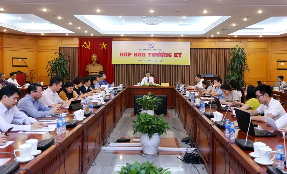 Quang cảnh cuộc họp báo quý I-2019 của Bộ KH-CN. Ảnh T.B