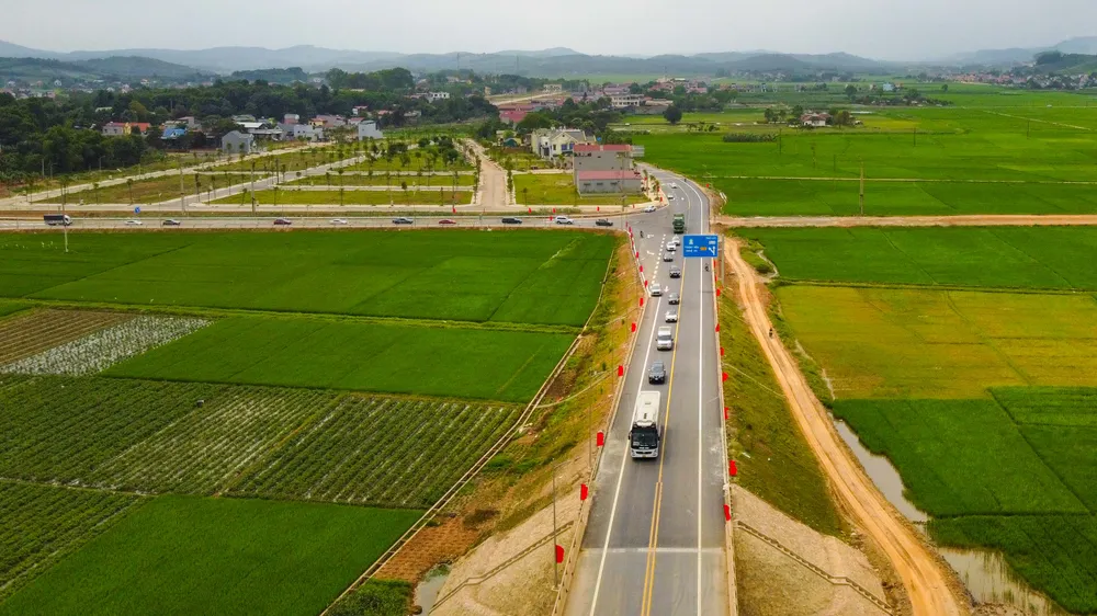 | Nhiều phương tiện đã lưu thông trên cao tốc Mai Sơn - Quốc lộ 45. Ảnh: DUY CƯỜNG |