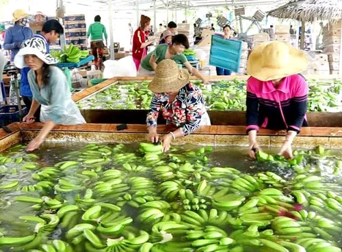 Buổi trưa, đúng vào giờ tan tầm, những chiếc chẹc chở nhân công từ trong rừng chuối chạy dồn về trụ sở của HTX ăn uống, nghỉ ngơi. Nơi đây đang yên bình lại rộn lên tiếng nói, cười tíu tít của họ. Đã vài tháng nay, ngày nào cũng vậy, hơn 100 con người, mỗi người mỗi việc theo sự phân công của Ban chủ nhiệm. Họ tuân thủ theo quy trình hướng dẫn rất nghiêm ngặt vì loại chuối này trồng để xuất khẩu, chứ không tiêu thụ nội địa.