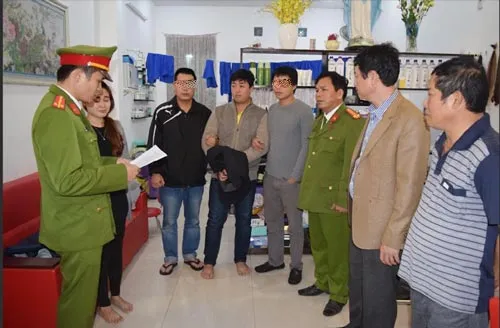 Công an đọc lệnh bắt giam Nguyễn Hoàng Tâm tại nhà riêng.