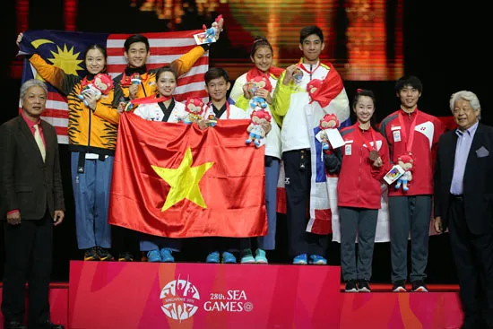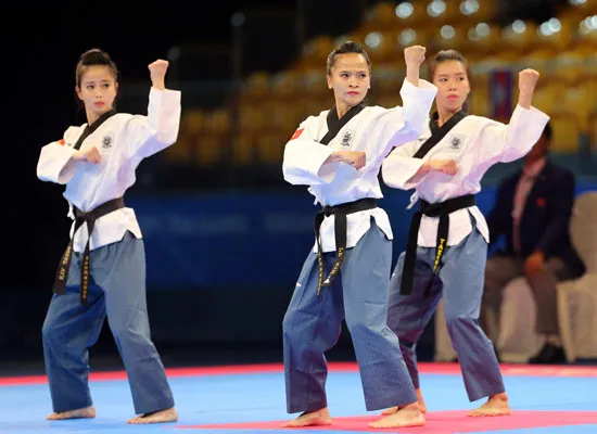 Trước đó, Taekwondo đã đoạt chiếc HCV đầu tiên của ngày thi đấu hôm nay khi cặp Nguyễn Minh Tú - Nguyễn Minh Văn giành số điểm cao nhất 7.885 trong hai bài biểu diễn quyền Taebak và ShipJin.
