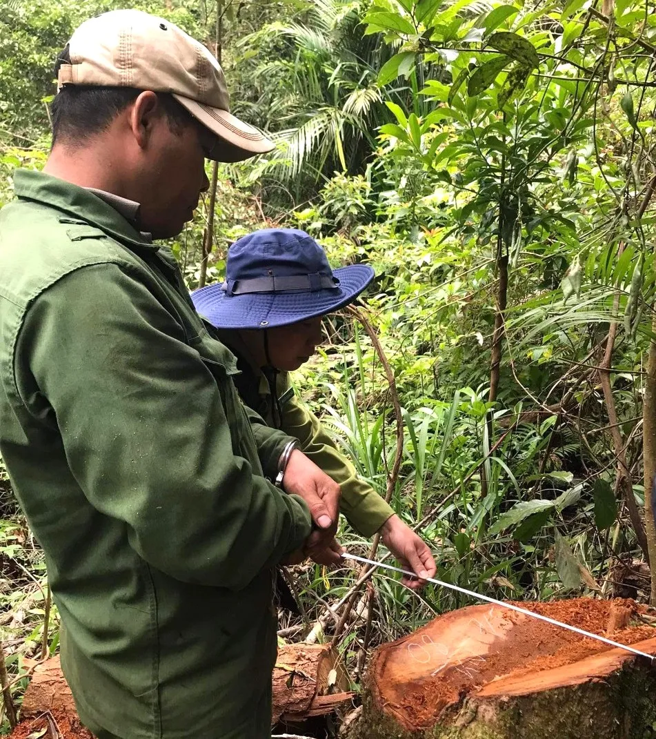 Tại hiện trường có 4 hộp gỗ xẻ, 2 xe máy dùng vận chuyển gỗ, 1 máy cưa xăng cùng 12 cây gỗ bị khai thác phép (chủng loại kháo, mít nào, SP5) với khối lượng gỗ thiệt hại là hơn 19,6m³ gỗ.