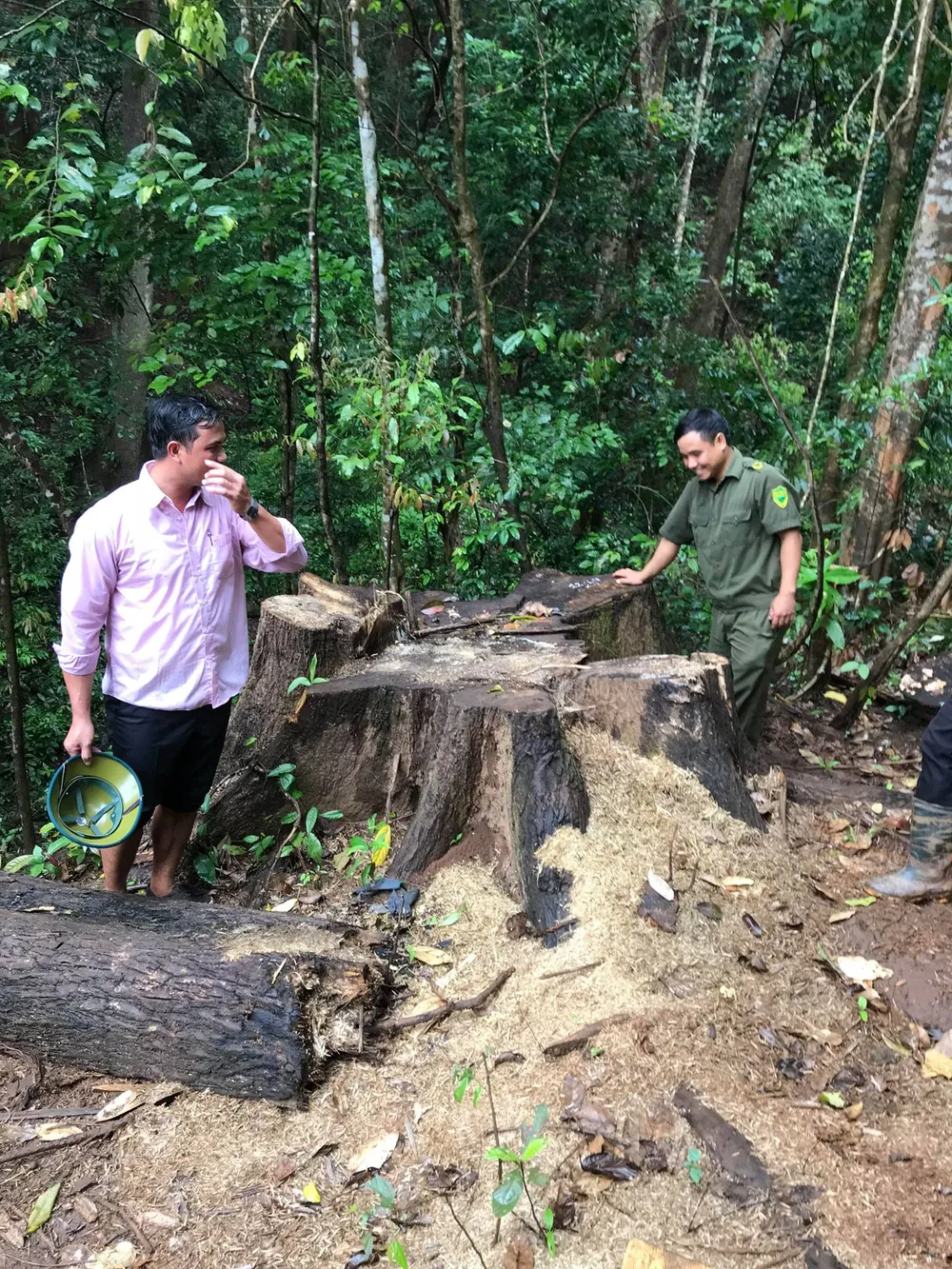 Đến ngày 14-6, Ninh, Thanh và Bằng mang cưa xăng và xe máy cày vào khu vực trại bò để cưa hạ 5 cây nhưng do số gỗ khai thác không đủ số lượng như dự định nên thống nhất ký tiếp hợp đồng với công ty mua thêm 10 m3 khối gỗ, vị trí tại khu thác đá. Nhận thấy khu vực này cây nhỏ, khó vận chuyển nên các đối tượng đồng ý chuyển qua khai thác tại “bãi ma” (thuộc khoảnh 4, tiểu khu 345, nằm ngoài diện tích đất của công ty). Lúc khai thác, do được An báo có kiểm lâm vào xã làm việc nên các đối tượng mang gỗ cất giấu nhiều nơi. Khối lượng gỗ khai thác trái phép là hơn 34m3 gỗ tròn.