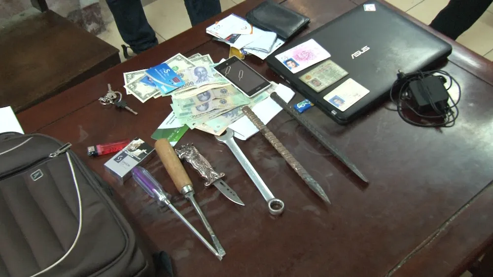 Công an đã thu giữ chiếc ba lô, bên trong có máy tính, điện thoại di động là tang vật của vụ án và nhiều vật dụng khác như tuốc lơ vít, cờ lê, dao bấm trên người đối tượng.