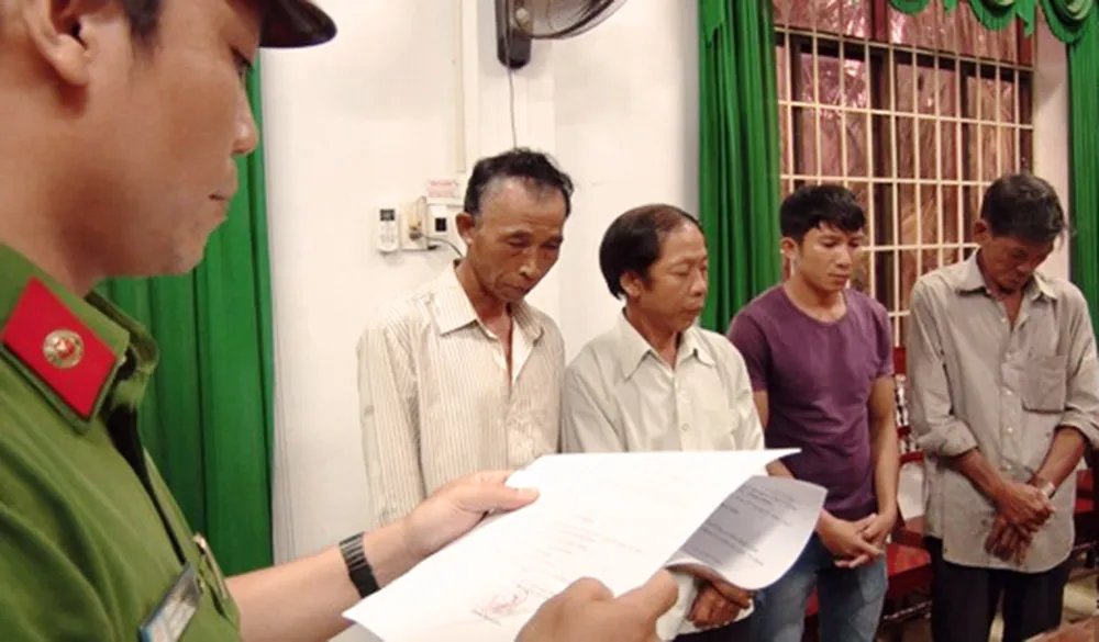 Bốn đối tượng bị áp dụng lệnh cấm đi khỏi nơi cư trú là, Võ Dần (SN 1949), Nguyễn Cứ (SN 1964), Văn Ngọc Triển (SN 1969) và Lê Xuân Hậu (SN 1968), cả 4 cùng trú tại xã Hoài Sơn.