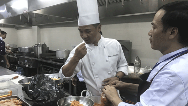 Chiều ngày 28-4, toàn bộ các gian hàng của Không gian ẩm thực Ngũ hành tiến hành tổng duyệt chế biến thử dưới sự giám sát và chỉ đạo của chính đầu bếp Phạm Tuấn Hải. “Tất cả đều đã sẵn sàng, từ nguyên liệu tới đội ngũ đầu bếp, chúng tôi hy vọng với sự lao động nghiêm túc và nhiệt huyết của mình, tất cả du khách sẽ được thưởng thức các món ăn chất lượng và ấn tượng”, vua đầu bếp Phạm Tuấn Hải chia sẻ thêm.