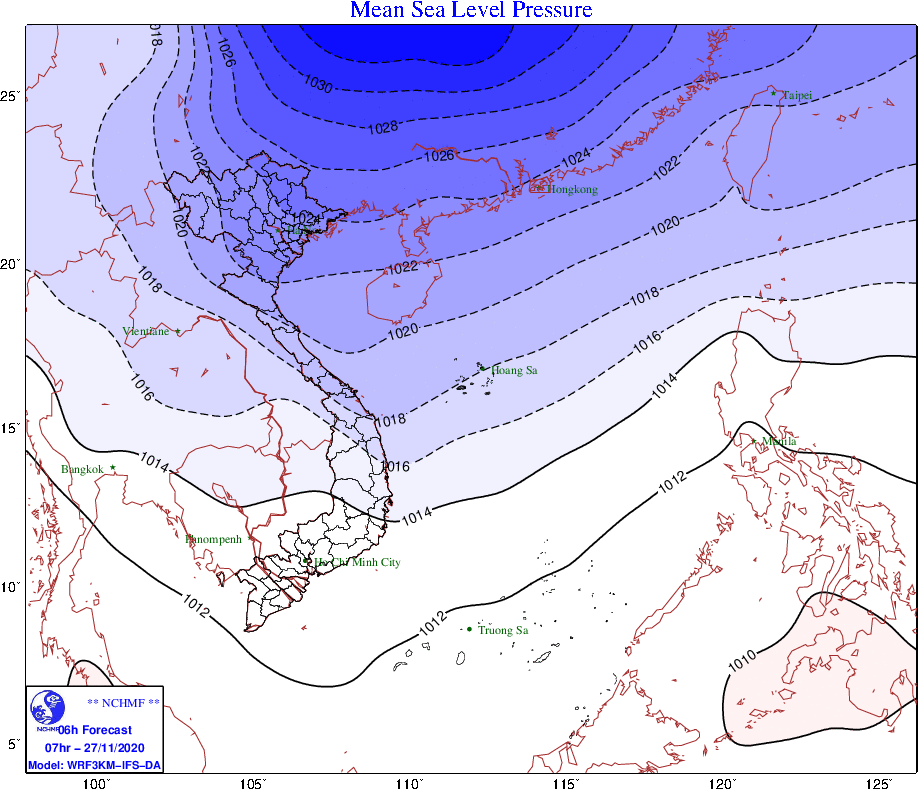 Trung tâm Dự báo khí tượng – thủy văn quốc gia phát tin cảnh báo, do ảnh hưởng của không khí lạnh tăng cường lệch đông nên ở các tỉnh Trung bộ đã xuất hiện mưa, mưa vừa trong ngày 27-11.