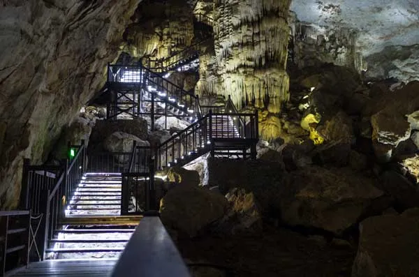 Cầu thang gỗ trong động Thiên Đường