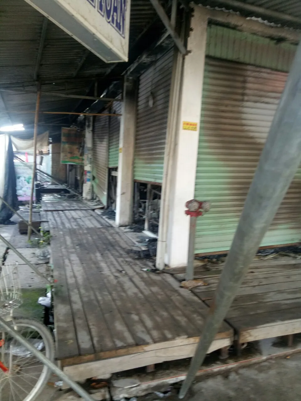 Vụ hỏa hoạn làm khoảng 30 ki ốt bị cháy hoàn toàn, nhiều tài sản của các tiểu thương cũng bị thiêu rụi.