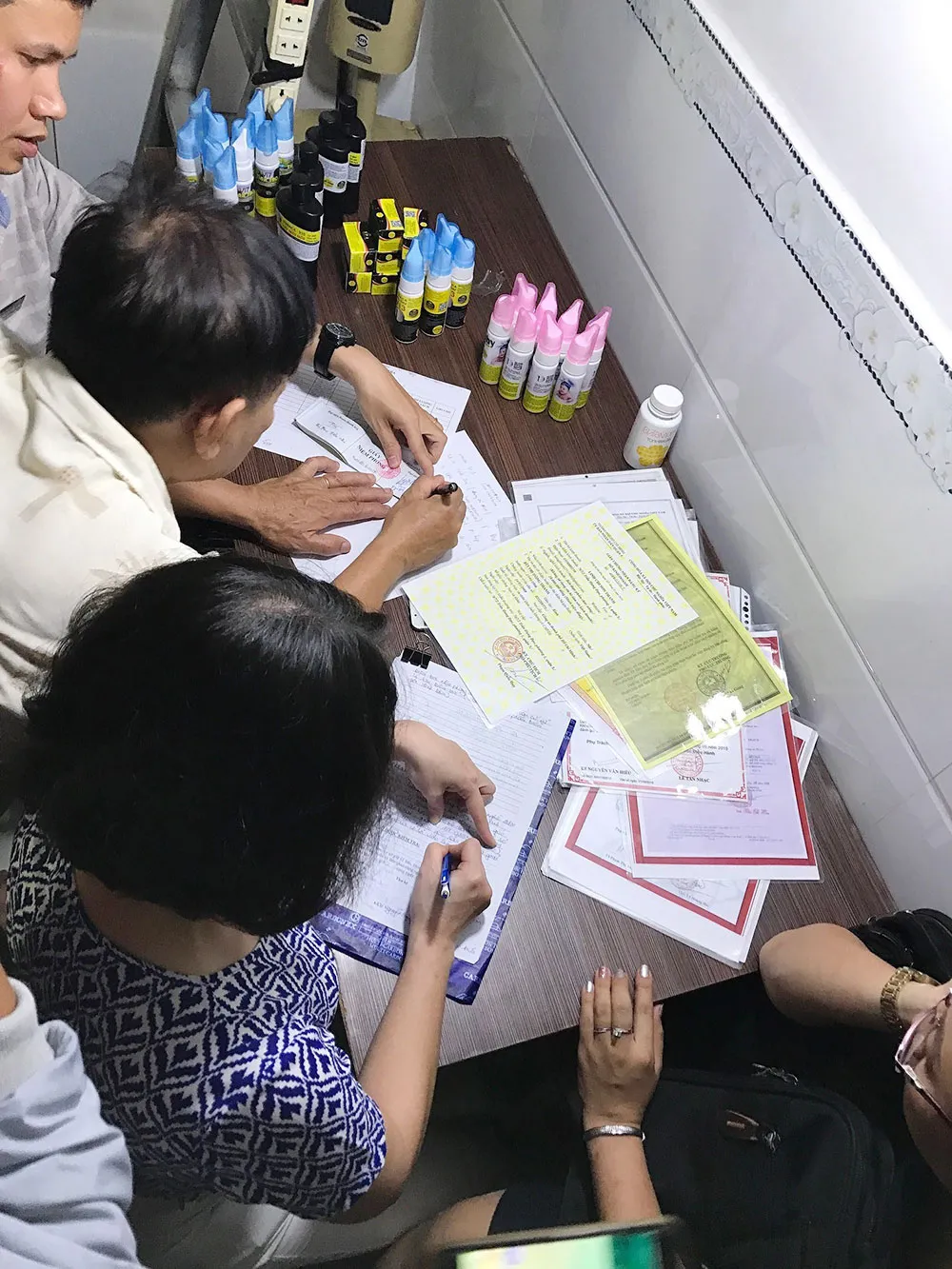 Tại địa chỉ Công ty CP Vinaca.vn chi nhánh Sài gòn 6 (số 767/2 Trần Hưng Đạo, quận 5), khi đoàn thanh tra tới, cơ sở này không hoạt động nhưng bên trong cơ quan chức năng phát hiện nhiều sản phẩm của Vinaca.
