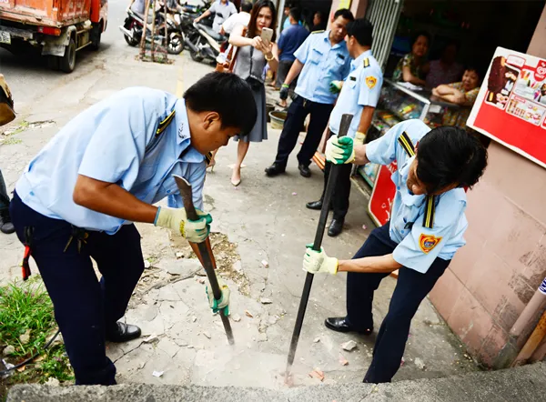Tháo dỡ diện tích lấn chiếm vỉa hè ở quận 1, TPHCM