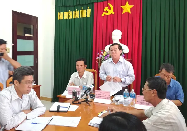 (SGGPO).- Sáng 28-3, Sở Thông tin – Truyền thông tỉnh Bình Thuận phối hợp với Ban Tuyên giáo Tỉnh ủy, Ban Nội chính Tỉnh ủy tỉnh Bình Thuận tổ chức buổi họp báo thông tin vụ việc xảy ra tại Trường Mầm non – Tiểu học Thanh Nguyên thuộc Công ty TNHH Thanh Nguyên (phường Xuân An, TP Phan Thiết, tỉnh Bình Thuận).