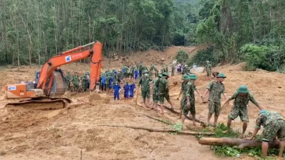 Lực lượng chức năng tìm kiếm các đồng đội hy sinh, mất tích