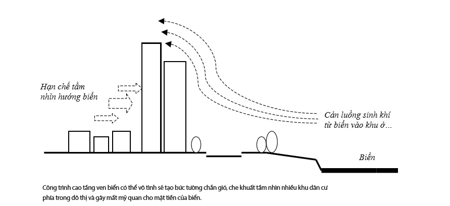 Không gian kiến trúc cảnh quan đô thị biển chịu nhiều tác động lớn khi xây dựng các công trình cao tầng ven biển. Bởi việc xây dựng này sẽ nhanh chóng mang đến một diện mạo kiến trúc cảnh quan mới, được coi là hiện đại mà trước đây đô thị không có được (Tuyến đường Trần Phú của TP Nha Trang là một ví dụ).