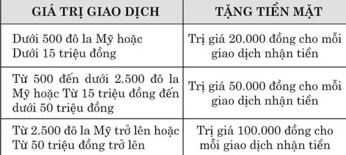 Theo đó, khi tham gia chương trình, ngoài việc giao dịch được thực hiện một cách nhanh chóng, khách hàng cá nhân thực hiện nhận tiền kiều hối qua Western Union tại SCB sẽ nhận quà tặng được quy đổi như sau: