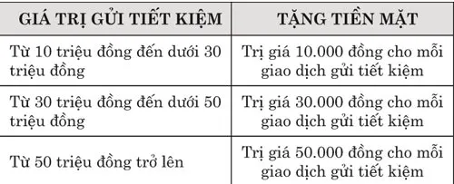 Bên cạnh đó, khách hàng có nhu cầu gửi tiết kiệm VND với kỳ hạn từ 6 tháng trở lên từ nhận tiền Western Union sẽ được nhận quà tặng có giá trị như sau: