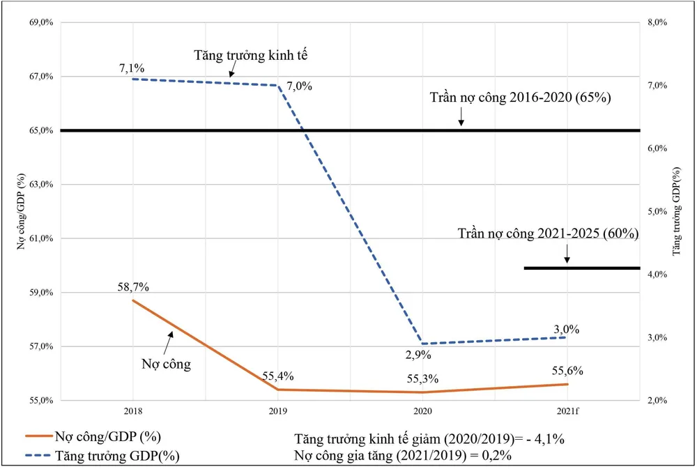 Hai năm liên tục 2020, 2021, chúng ta phải đối mặt với dịch Covid-19 gây hậu quả nghiêm trọng chưa từng có, tăng trưởng kinh tế 2 năm liên tục dưới 4% là điều chưa từng có trong 25 năm qua. Theo kinh nghiệm của 20 nước ở 4 châu lục, tình huống này đòi hỏi giải pháp chưa từng có: Tăng nợ công đủ lớn, sử dụng nợ công như nguồn lực tài chính công chủ yếu để khắc phục nhanh hậu quả của dịch Covid-19 và phục hồi tăng trưởng kinh tế.