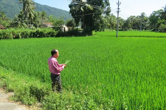 Dọc theo tuyến đường ĐT644, đoạn qua thôn 3 (xã Đa Lộc), nhìn ra cánh đồng Ruộng Làng lá lúa vươn cao xanh tốt “sà” ra bờ ruộng. Ba năm qua, người dân thôn 3 sáng bước ra khỏi nhà là đụng màu xanh ruộng lúa, chứ không phải đồng khô cỏ cháy như trước nữa. Xuôi xuống cánh đồng thôn 1, thấy lúa chín sớm, đồng bào dân tộc thiểu số Ba Na, Chăm H’roi đang gùi lúa bó to. Cánh đồng thôn 1 mỗi vụ sạ 1,7ha lúa nước; đến mùa vụ, chủ ruộng ra be bờ cuốc lát cuốc khui trổ ruộng nước chảy vào cả ngày lẫn đêm. Anh Lê Văn Hường, Phó giám đốc HTX Đa Lộc (người dân tộc Chăm H’roi), phân trần: Trồng lúa có nước tưới, khi cắt gánh về gié lúa hạt sáng trưng; không như trước làm lúa thổ, có năm cây lúa “tròn mình” (sắp trổ đồng) lại gặp nắng hạn kéo dài khiến lúa “ăn gần đến miệng rồi” vẫn mất mùa, gié lúa đen nốt ruồi, lép xẹp, sàng sẩy mót từng hột lúa lừng. Hơn nữa làm lúa thổ, thời điểm cắt lúa vào mùa mưa nên phải sấy lúa trên gác bếp, gạo lúa sấy nát vụn. Còn nay lúa phơi trong nong tre, hạt gạo trọng suông.