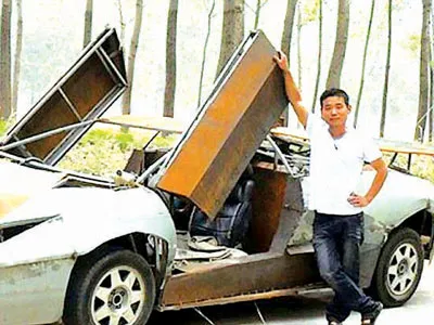 Anh Vương Kiên, nông dân kiêm thợ cơ khí ở tỉnh Giang Tô (Trung Quốc) sau hơn 1 năm đã hoàn thành một phiên bản siêu xe Lamborghini Reventon từ… sắt vụn. Siêu xe Lamborghini Reventon là chiếc xe anh mơ ước từ lâu nhưng không thể với tới vì mức giá 1,3 triệu USD. Anh đã mua lại một chiếc Volkswagen cũ và một mô hình xe Reventon để tham khảo, lắp ráp và kết hợp nhiều phụ tùng trong xe để hoàn thành bản sao Lamborghini Reventon (ảnh).
