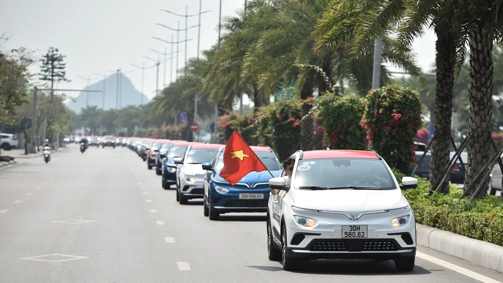 100 ô tô điện VF e34 đã khởi hành sáng 7-4-2022, từ Quảng trường 30-10 (TP Hạ Long, Quảng Ninh) để chinh phục mũi Sa Vĩ - điểm cực Đông Bắc của Tổ quốc, nơi được ví là nét đặt bút đầu tiên vẽ nên bản đồ hình chữ S Việt Nam.