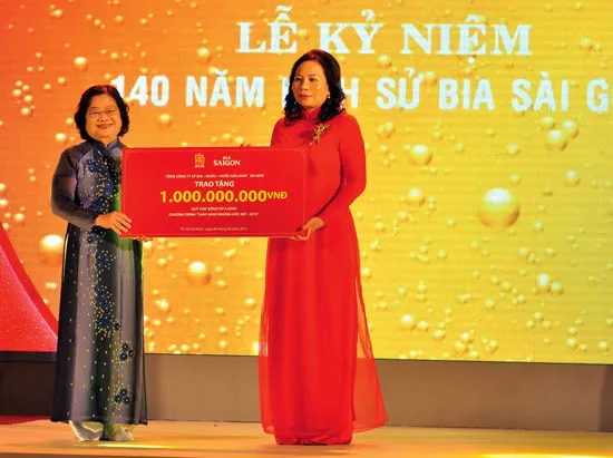 Bia Sài Gòn trao biểu trưng 1 tỷ đồng tặng Quỹ học bổng Vừ A Dính