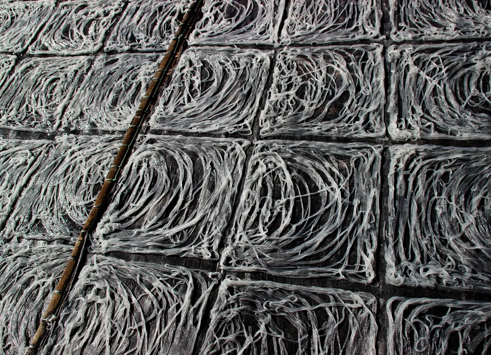 Đội bún Song Thằn ra phơi ở bãi cát dọc sông Côn