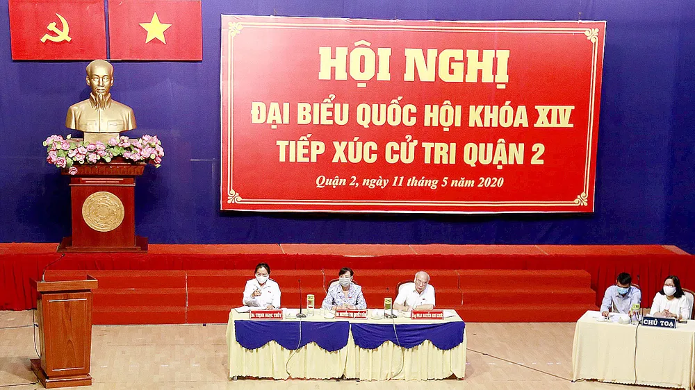 Cùng ngày, các ĐB Quốc hội Nguyễn Minh Hoàng, Thiếu tướng, nguyên Phó Chính ủy Quân khu 7; Tô Thị Bích Châu, Ủy viên Ban Thường vụ Thành ủy, Chủ tịch Ủy ban MTTQ Việt Nam TPHCM; Dương Ngọc Hải, Trưởng ban Nội chính Thành ủy TPHCM, tiếp xúc cử tri quận 7 và huyện Nhà Bè.