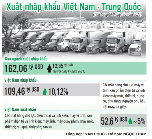 Bên cạnh những thuận lợi và thời cơ, các chuyên gia vẫn cảnh báo những thách thức khi Trung Quốc mở cửa biên giới trở lại, trong đó có nguy cơ tái bùng dịch bệnh. Bộ Công thương nhận định, lượng phương tiện vận chuyển hàng hóa lên các cửa khẩu phía Bắc sẽ gia tăng trước Tết Quý Mão. Vì vậy, bộ đề nghị các doanh nghiệp, địa phương, nhất là các vùng sản xuất nông sản tập trung xuất khẩu đi thị trường Trung Quốc cần chủ động cập nhật thông tin về tình hình hàng hóa thông quan tại các cửa khẩu và phối hợp chặt chẽ với các tỉnh ở biên giới phía Bắc để điều phối lưu lượng hàng hóa xuất khẩu qua địa bàn.