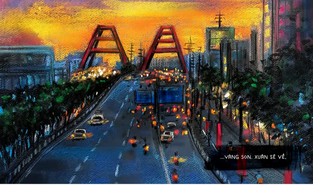 Những bức tranh của hoạ sĩ Lê Sa Long hoà cùng ca khúc "SàI Gòn thương" đã làm nên bức tranh lớn về một TPHCM đậm nghĩa tình