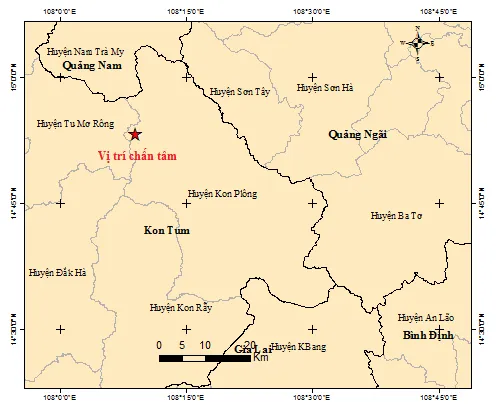 Trước đó, vào 1 giờ 32 phút 11 giây ngày 8-5, một trận động đất cũng xảy ra ở huyện Kon Plông với độ lớn 2,6 độ richter.