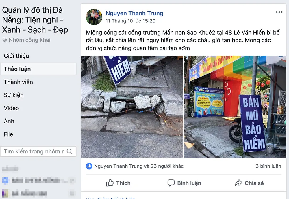 Ở Đà Nẵng có một trang Facebook mang cái tên khá dài là “Quản lý đô thị Đà Nẵng: Tiện nghi - xanh - sạch - đẹp” (gọi tắt là Trang QLĐTh). Những người sáng lập ra trang này với mong muốn tranh thủ tiếng nói của cộng đồng để góp phần làm cho Đà Nẵng sạch đẹp, văn minh, an bình hơn. Những quản trị của trang (Admin) gồm một số lãnh đạo cấp phòng của Văn phòng UBND thành phố, lãnh đạo một số sở ngành.