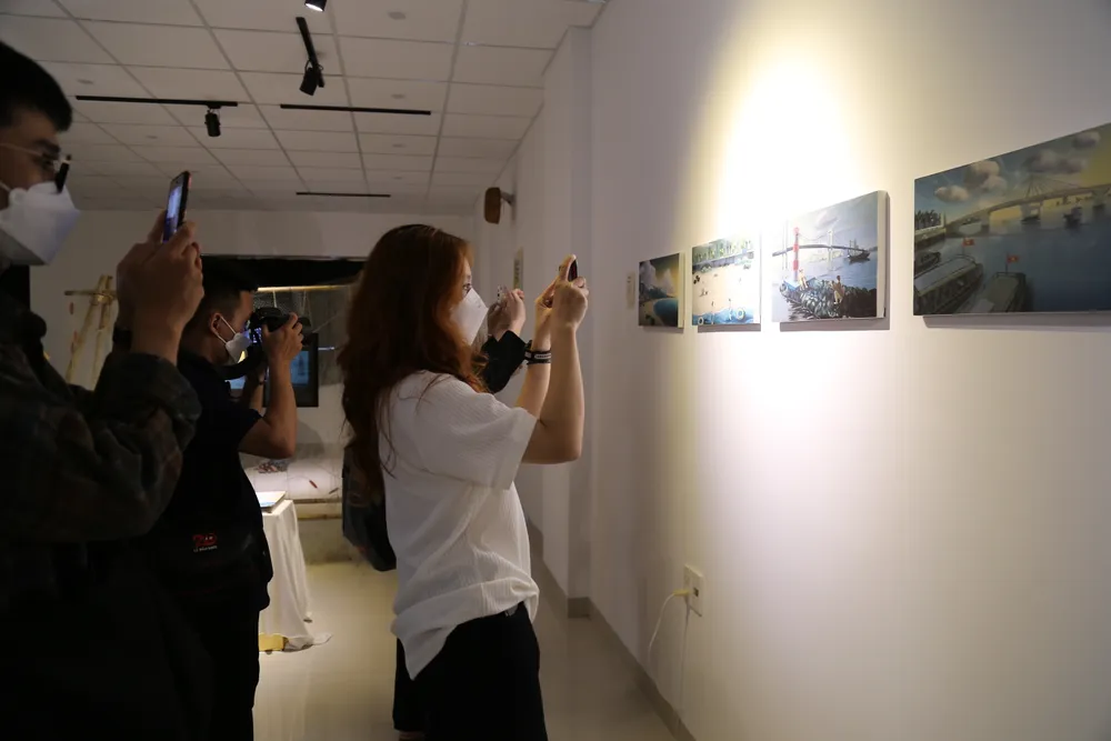 "Thời sinh viên, mấy đứa bạn hay rủ nhau ra đây tắm biển buổi chiều. Mấy chục năm rồi, vùng ven biển cũng khác hẳn. Triển lãm làm tôi nhớ về những ngày con trẻ. Có lẽ, sau triển lãm, tôi cũng sẽ dẫn các con tham quan tất tần tật những điểm này", ông Hiển hoài niệm.