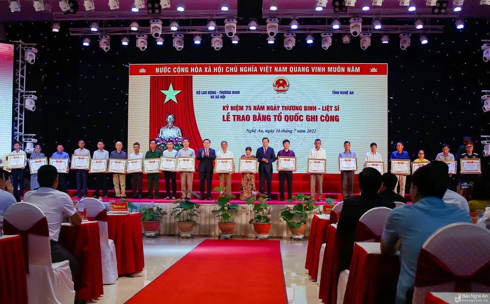 Tại buổi lễ, lãnh đạo trung ương, địa phương đã trao Bằng Tổ quốc ghi công cho 75 thân nhân liệt sĩ đại diện cho 387 liệt sĩ thuộc Bộ Quốc phòng, Bộ Công an và 30 tỉnh, thành trong cả nước.