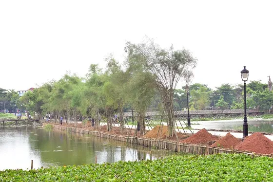 Trồng tre chống sạt lở hồ Tịnh Tâm
