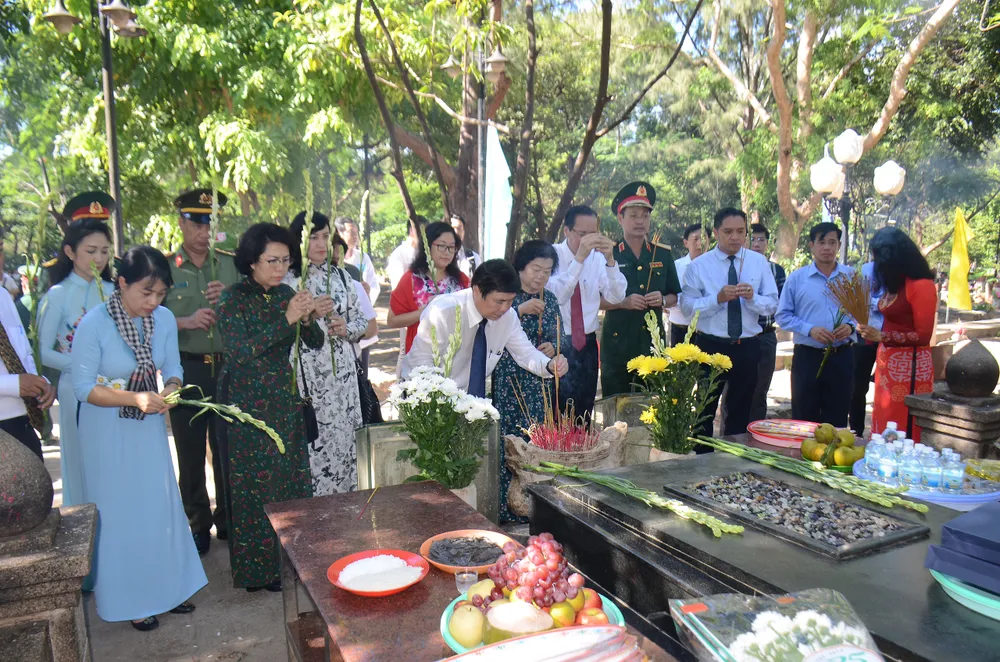 Cùng dâng hương có các đồng chí: Trương Mỹ Hoa, nguyên Phó Chủ tịch nước, Cựu tù chính trị bị giam giữ tại Côn Đảo; Nguyễn Văn Đua, nguyên Phó Bí thư Thường trực Thành ủy TPHCM; Tô Thị Bích Châu, Ủy viên Ban Thường vụ, Chủ tịch Ủy ban MTTQ Việt Nam TPHCM; Lê Thanh Liêm, Ủy viên Ban Thường vụ, Phó Chủ tịch Thường trực UBND TPHCM; Phan Nguyễn Như Khuê, Ủy viên Ban Thường vụ, Trưởng Ban Tuyên giáo Thành ủy TPHCM; Thiếu tướng Nguyễn Văn Nam, Ủy viên Ban Thường vụ, Tư lệnh Bộ Tư lệnh TPHCM; Phan Thị Thắng, Phó Chủ tịch HĐND TPHCM… cùng lãnh đạo các ban, ngành, đoàn thể của TPHCM, lãnh đạo Tỉnh ủy – HĐND – UBND - Ủy ban MTTQ tỉnh Bà Rịa-Vũng Tàu, huyện Côn Đảo, cựu tù chính trị bị giam giữ tại Côn Đảo…