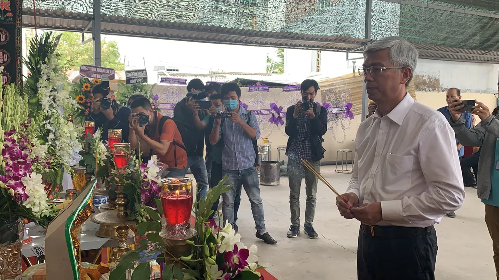 Tại cơ sở mai táng Giồng Ông Tố (nơi quàn các nạn nhân), thay mặt lãnh đạo TPHCM, Phó Chủ tịch UBND TPHCM Võ Văn Hoan ân cần hỏi thăm, chia sẻ, động viên và gửi lời chia buồn sâu sắc với sự mất mát to lớn của gia đình các nạn nhân.