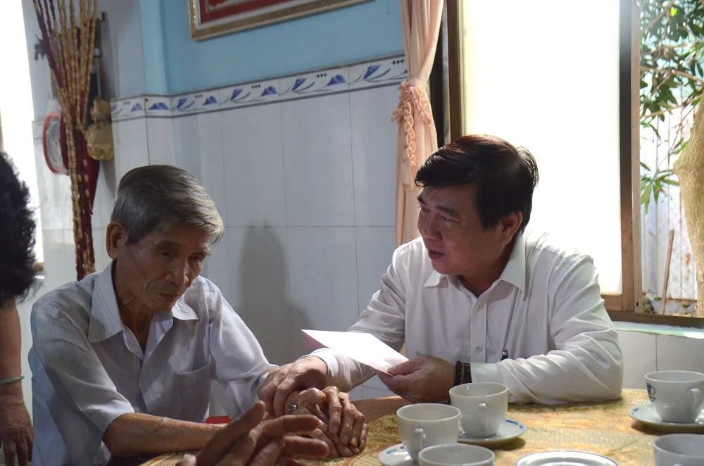 Chủ tịch UBND TPHCM Nguyễn Thành Phong đã đến nhà riêng thăm hỏi ông Nguyễn Xuân Viên (77 tuổi, thương binh, người bị địch bắt tù đày); ông Trần Văn Tam (81 tuổi, thương binh); ông Nguyễn Đình Bá (71 tuổi, thương binh); bà Võ Thị Thanh (88 tuổi, vợ liệt sĩ) và bà Lê Thị Diệm (81 tuổi, vợ liệt sĩ), cùng ngụ tại huyện Côn Đảo.