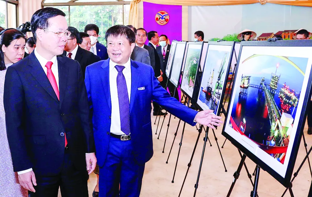 Cùng ngày, đồng chí Võ Văn Thưởng và đoàn đại biểu cấp cao Việt Nam đã chào nguyên Tổng Bí thư, nguyên Chủ tịch nước Bounnhang Volachith và tham dự Lễ khai mạc Tuần Văn hóa Việt Nam tại Lào.
