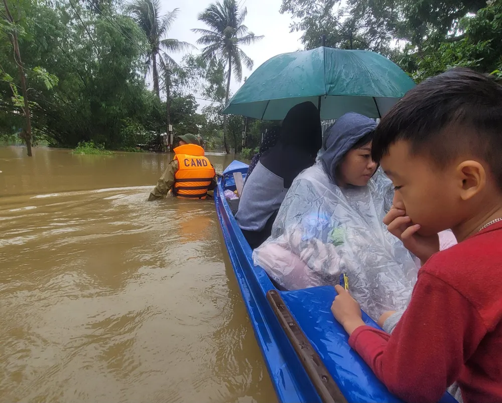 Trời mưa như trút nước, phía dưới nước lũ chảy xiết nhưng các cán bộ, chiến sĩ Công an tỉnh Thừa Thiên Huế vẫn lao mình vào các điểm nguy cấp để cứu người. Cùng với đó, hàng ngàn người dân cô lập trong lũ được di dời đến nơi trú ẩn an toàn, nhiều sản phụ chuyển dạ đã được đưa đến bệnh viện bình an.