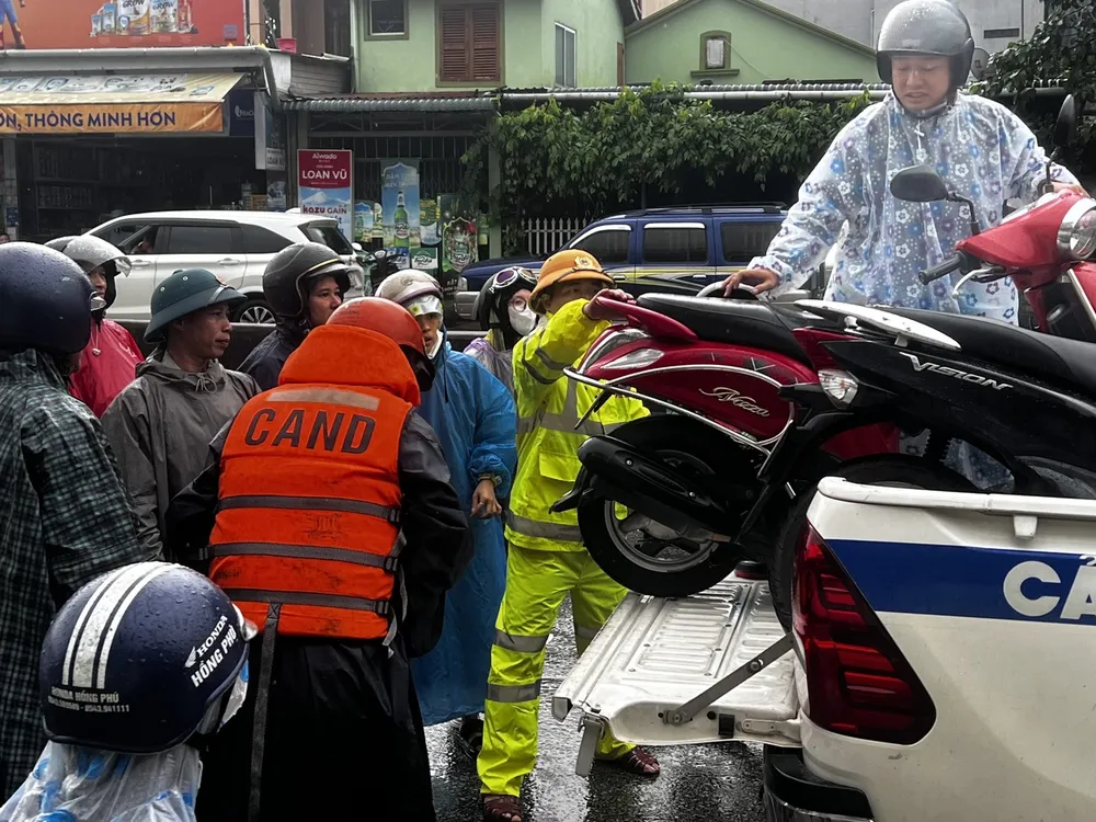 Thời điểm này, Trạm Cảnh sát giao thông Công an tỉnh sử dụng phương tiện chuyên dụng kịp thời hỗ trợ hàng chục người và phương tiện đi qua đoạn nước sâu. Trong đó, 2 du khách quốc tịch Pháp cần đến sân bay Phú Bài để kịp giờ bay đã được lực lượng CSGT hỗ trợ kịp thời cùng với 2 mẹ con và một cụ già tại huyện Phú Lộc từ vùng nước sâu đến nơi an toàn.