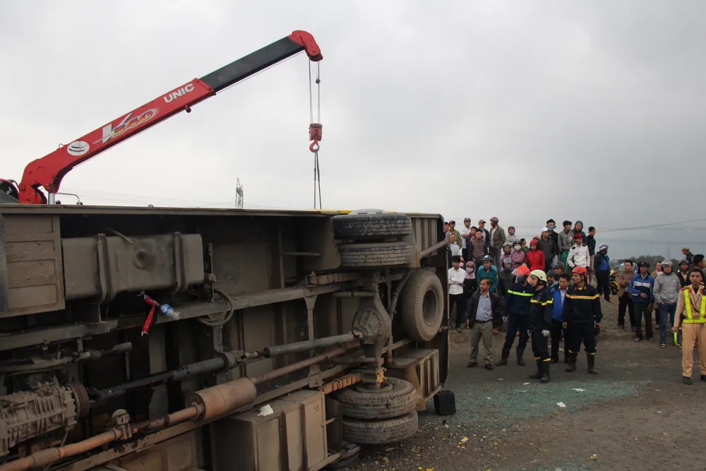 Lật xe chở công nhân về quê ăn Tết, 2 người chết, 15 người bị thương