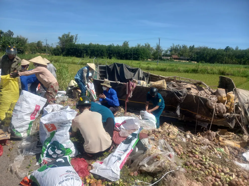 Anh Trương Minh Linh, Phó Bí thư Thị đoàn Đức Phổ, cho biết, ngay khi phát hiện xe lật, trái cây đổ ra ruộng, Đoàn phường Phổ Minh đã lập tức kêu gọi thanh niên cùng người dân tập trung thu gom trái cây bị đổ, chủ yếu là trái chanh dây, giúp tài xế.