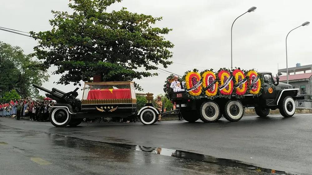 Đoàn xe đưa linh cữu Chủ tịch nước Trần Đại Quang về quê hương Kim Sơn, Ninh Bình. Ảnh: TTXVN