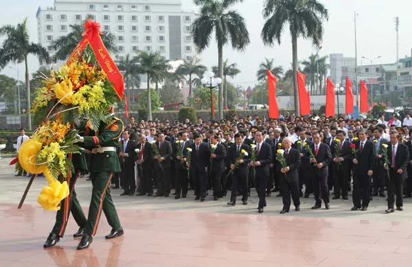 Lãnh đạo Đảng, Nhà nước cùng các đại biểu đặt vòng hoa tưởng niệm đồng chí Lê Duẩn tại Tượng đài Tổng Bí thư Lê Duẩn ở TP Đông Hà.